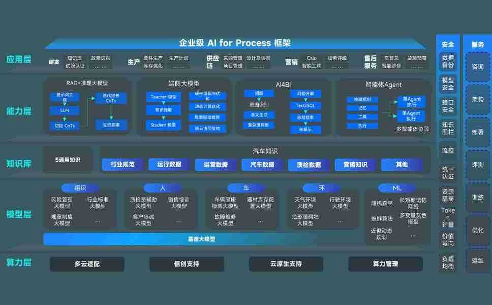 端到端的一站式AI工作空间深度融合了从企业战略规划到日常经营的全流程业务板块,,,,定向解决车企内部领域多、、、部门多、、、、链条长、、场景碎片化等难题,,支持车企快速构建以AI为核心的生产力写作体系,,,实现任务执行与AI能力的无缝集成与交互